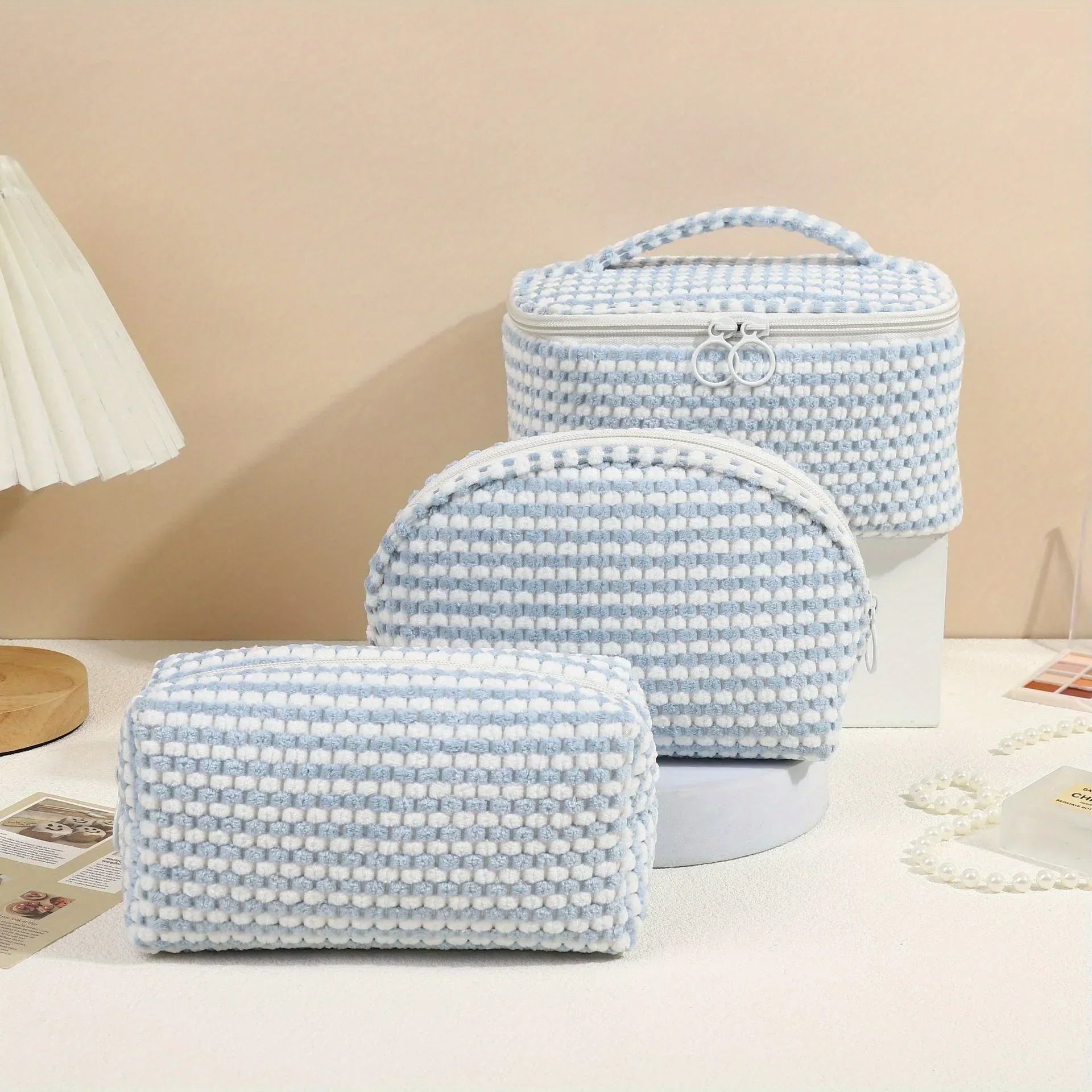 Emily Kosmetiktaschen Set erbjuder både stil och mångsidighet med sitt mjuka kordmaterial. Detta set innehåller flera väskor i olika storlekar, vilket gör det enkelt att organisera alla dina skönhetsprodukter. Oavsett om du packar för en resa eller organiserar dina dagliga saker, erbjuder dessa väskor både funktionalitet och charm.