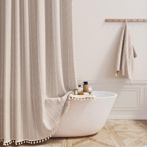 Duschdraperier i bohemisk lantlig stil ger ditt badrum ett vackert utseende, skapar en avslappnande atmosfär i rummet och ger det en fräsch, ny look![9][9][9]