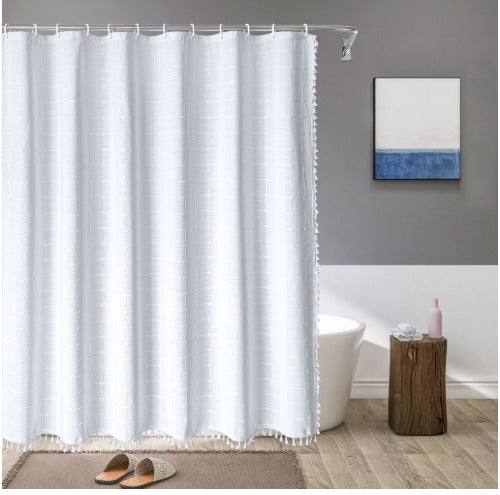 Tofsdesign:[9]Charmiga tofsar pryder draperiernas nederkant och förenar perfekt bohemstilen. De ger ditt badrum en lekfull touch och skapar en mysig atmosfär.[9][9]