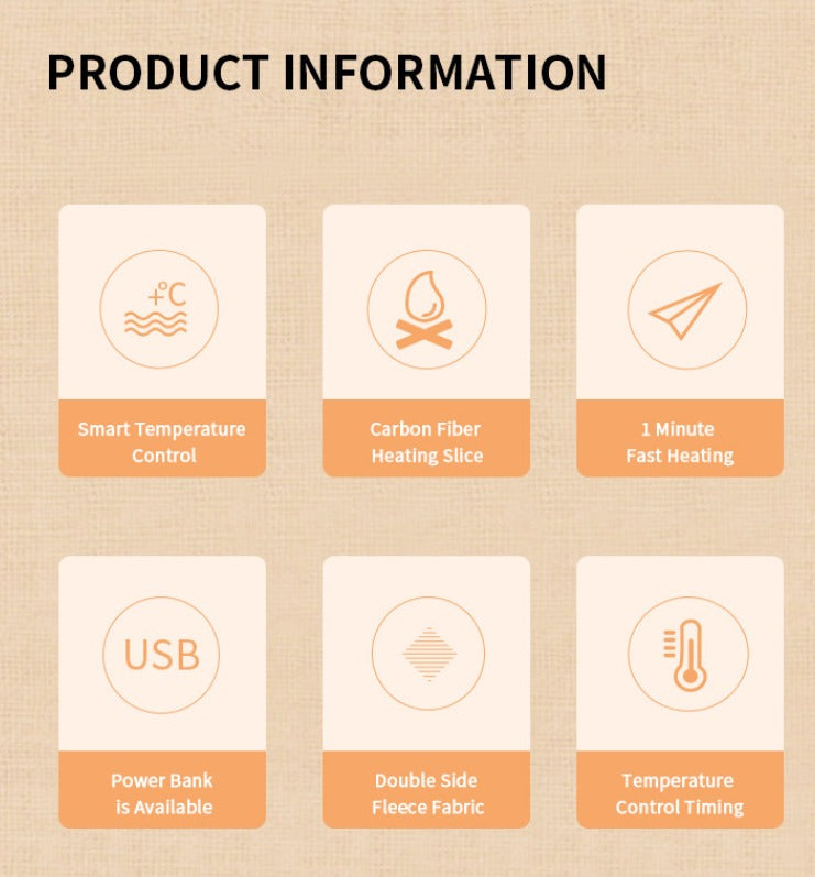 Med en bekväm USB-anslutning kan Thermacare-värmekudden drivas från olika källor, inklusive bärbara datorer, powerbanks eller BIL-USB-portar. Säg adjö till klumpiga värmekuddar och upplev flexibiliteten i vår bärbara design. Oavsett om du behöver en kort paus under en hektisk arbetsdag eller vill koppla av efter en lång pendling, är Thermacare din lösning.